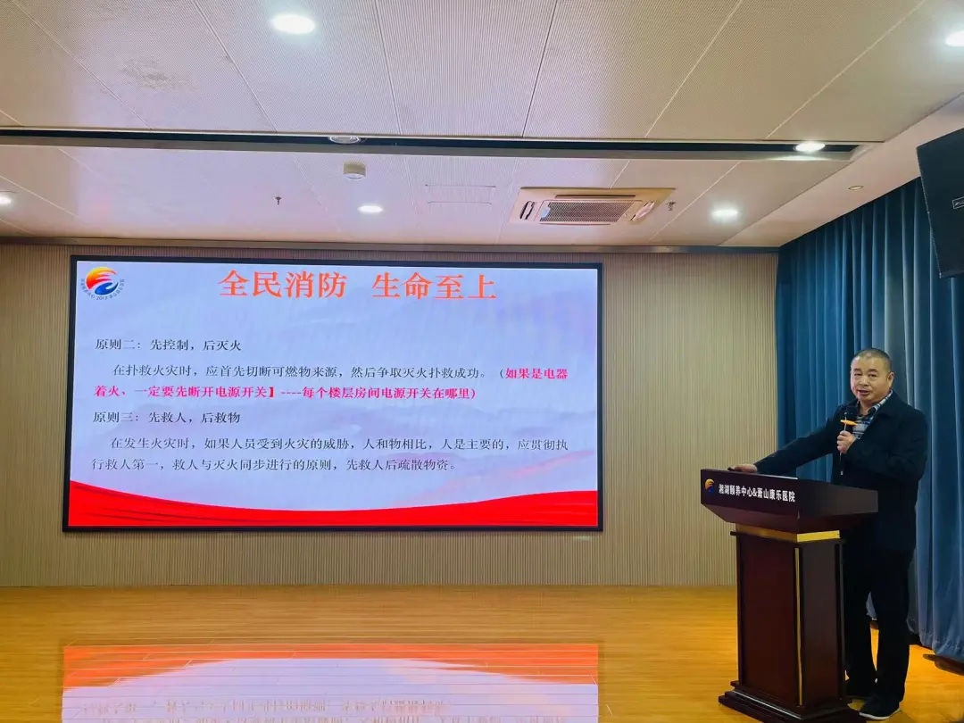 11月 14 日为我院安全生产警鸣日,湘湖颐养中心组织开展了系列宣传教育活动。在消防安全教育培训会议上,陈院长强调:提升我院安全生产管理水平,增强全体员工的安全意识,守护长者平安健康,将安全意识融入到日常工作的每一个环节。