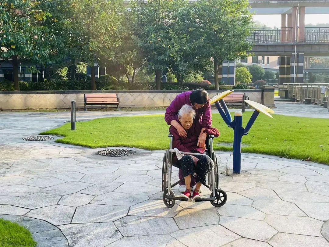 天气好的时候,护理员会推着行动不便的长者到花园里晒晒太阳、理发,聊聊家常。护理员细心陪护和照料,让失能和半失能长者的生活不再孤单。