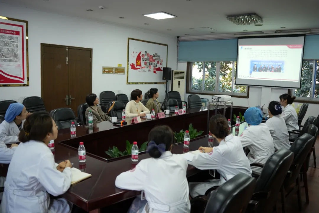 浙江省针灸学会中医护理专委会主任委员方群,副主任委员蔡群 ,委员杨玉平、张晓平、戴霞玲,莅临我院进行工作指导与交流。拱墅区人民中西医结合医院护理部主任李娅妮主持会议。