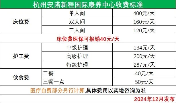 杭州安诺新程国际康养中心收费标准