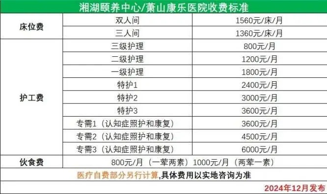杭州萧山康乐医院收费标准
