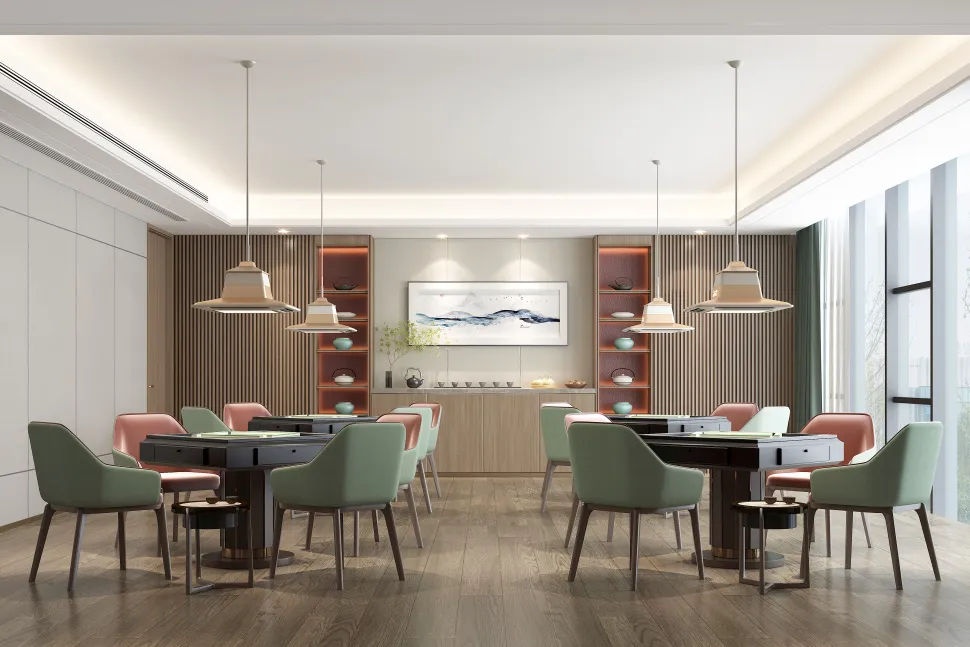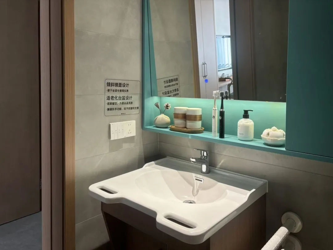 康养中心设计上汲取宋代美学和江南雅韵精髓,融入简约和京味流线,为入住的长者们营造舒适生活环境。