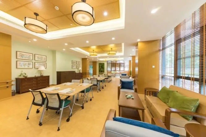 总建筑面积 1.36 万平方米,由美国知名养老功能设计师 Jane Rohde 操刀,采用 “适老化 + 智能化” 双轨设计。主体建筑 5 层,64 间居室均朝南,配备全景落地窗、电动护理床、可升降台盆等设施。公共区域包括感官唤醒影院、水疗 SPA 中心、家庭聚餐室、图书馆等,绿化率达 40%,户外设置景观平台、烧烤区和康复步道。