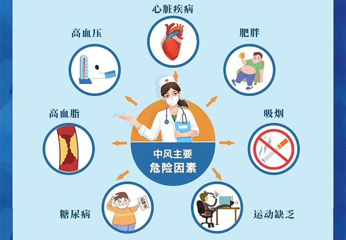 脑卒中的危险因素包括高血压、糖尿病、血脂异常、房颤、吸烟、酒精摄入、不合理膳食、超重或肥胖、运动缺乏、心理因素等。