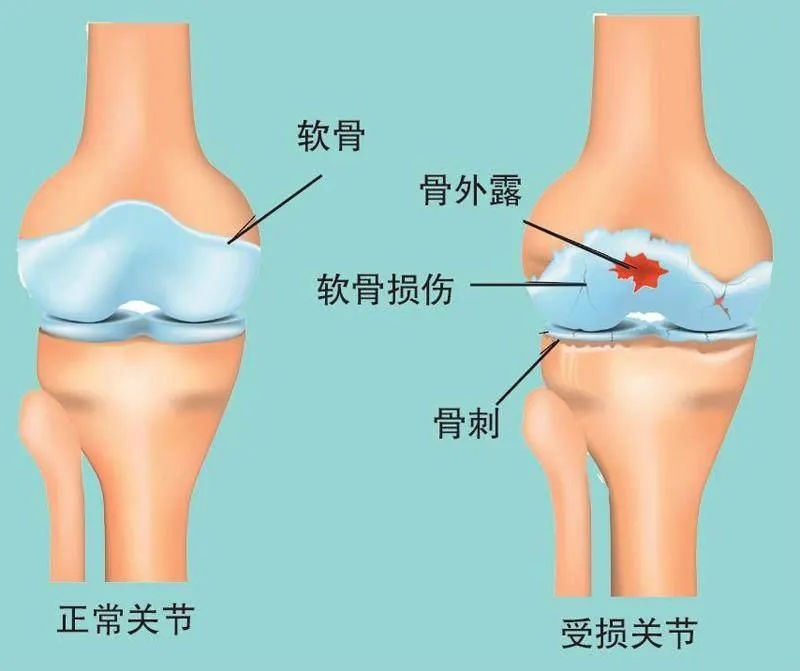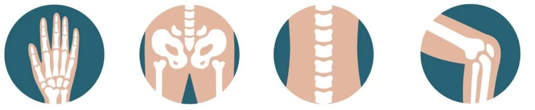 骨性关节炎又称增生性骨关节病、退行性骨关节病。好发于膝、髋、手(远端指间关节、第一腕掌关节)、足(第一跖趾关节、足跟)、脊柱(颈椎及腰椎)等负重或活动较多的关节。多发于老年人、关节损伤后、过度运动等。