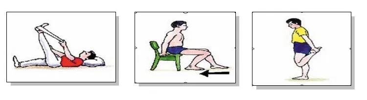 卧位:小腿伸张利用皮带或毛巾把脚拉向前,直到大腿后部感到伸张为止。