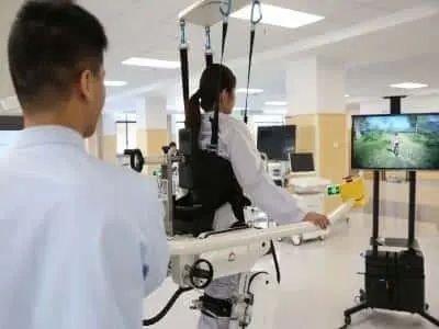 海宁皮城康复医院康复中心总面积3000余平方米,分二楼综合评估区与三楼康复治疗区,配备先进治疗及评估设备一千余万,工作人员20余名,完全按照现代康复理念建设,包含多媒体运动康复系统、下肢康复机器人、SET悬吊康复训练系统、等速肌力评定与训练系统,步态分析仪、多媒体互动魔方,智能平衡评估与训练系统,多媒体智能上下肢四肢联动运动系统,上下肢motomed训练仪,E-Link智能评估与训练系统,肌电生物反馈治疗仪、表面肌电检测仪、盆底肌训练系统、经颅电刺激治疗仪、慢性小脑电治疗仪、肌痉挛治疗仪、智能水疗系统、恒温蜡疗仪、全身肌力评定与训练系统,超声骨密度测定和治疗系统,心理、言语、吞咽评估训练系统,间动电吞咽训练仪,DMS肌肉深层治疗仪(筋膜枪)、三维快速牵引及短波、超短波、微波及各式高中低频电疗等,可满足如脑卒中偏瘫、脊髓损伤、骨折术后及各种软组织疼痛患者的康复需求。