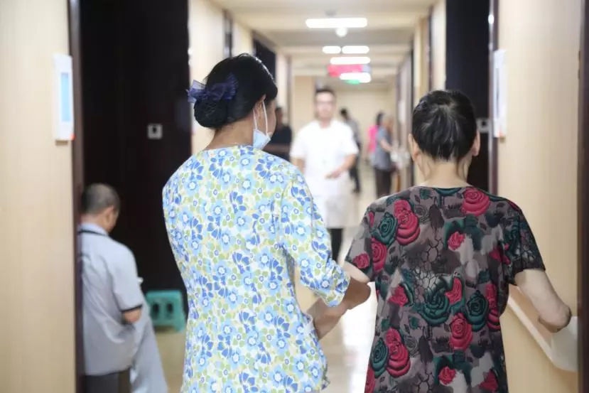 长者适宜的运动,由医护人员和生活护理员陪伴。
