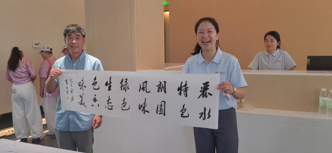 现场邀请了一批丽水当地的书画名家,他们将撰有“长者第一,超越期待”、“福寿安康”等字样的书法作品,赠送给了机构及参加本次活动的长者。