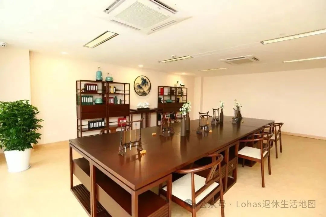 项目有3000㎡娱乐与休闲配套空间,包括阳光餐厅、图书馆、书画室、多功能教室、棋牌室、康养健身房、中医养生室、网吧、影院、KTV、美容美发、健康小屋与户外花园秘境等,全方位满足老人日常生活与精神层面需要。