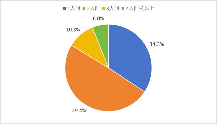 养老机构收费主要包括住宿费、餐饮费和护理费用。问卷结果显示:83.7%消费者居住1人间或2人间,比较舒适。48.2%养老机构住宿费用为2000-5000元/月;其次是2000元/月以下,占比为43%。消费者对住宿费价格的总体评价较满意,评价8分以上的占比为92.4%。