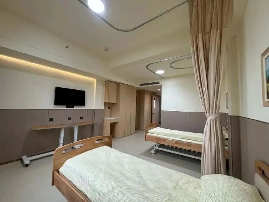 护理院房间宽敞明亮,通风良好,装修温馨舒适。房间内配备齐全的生活设施,如空调、电视、衣柜、冰箱、微波炉、呼叫系统、氧气系统等,满足长者的日常生活需求。每张床位均采用适老化设计,配备专业医用床等,确保长者的睡眠质量和身体安全。