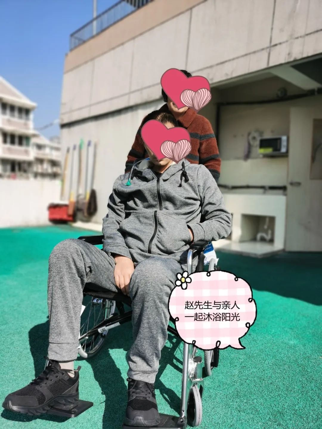丈夫的迅速恢复给这个家庭带来了希望,夫妇二人脸上逐渐有了笑容。天气晴好的时候,家属会推着赵先生出去晒晒太阳,沐浴着阳光,憧憬着出院后的新生活。