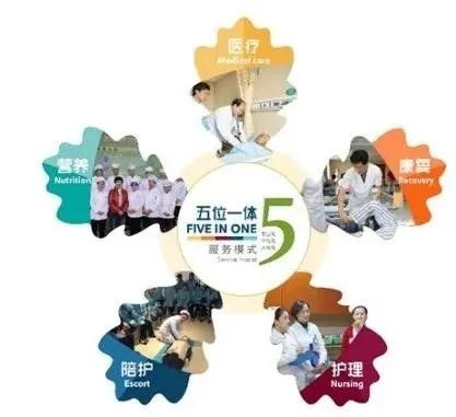 针对老年病起病缓慢、多病共存、变化迅速、并发症多、不易治愈等特点,采用医疗、康复、护理、陪护、营养“五位一体”服务模式,为老年患者提供医疗保障、康复训练、优质护理、生活照顾、健康饮食等专业化、规范化、人性化服务。