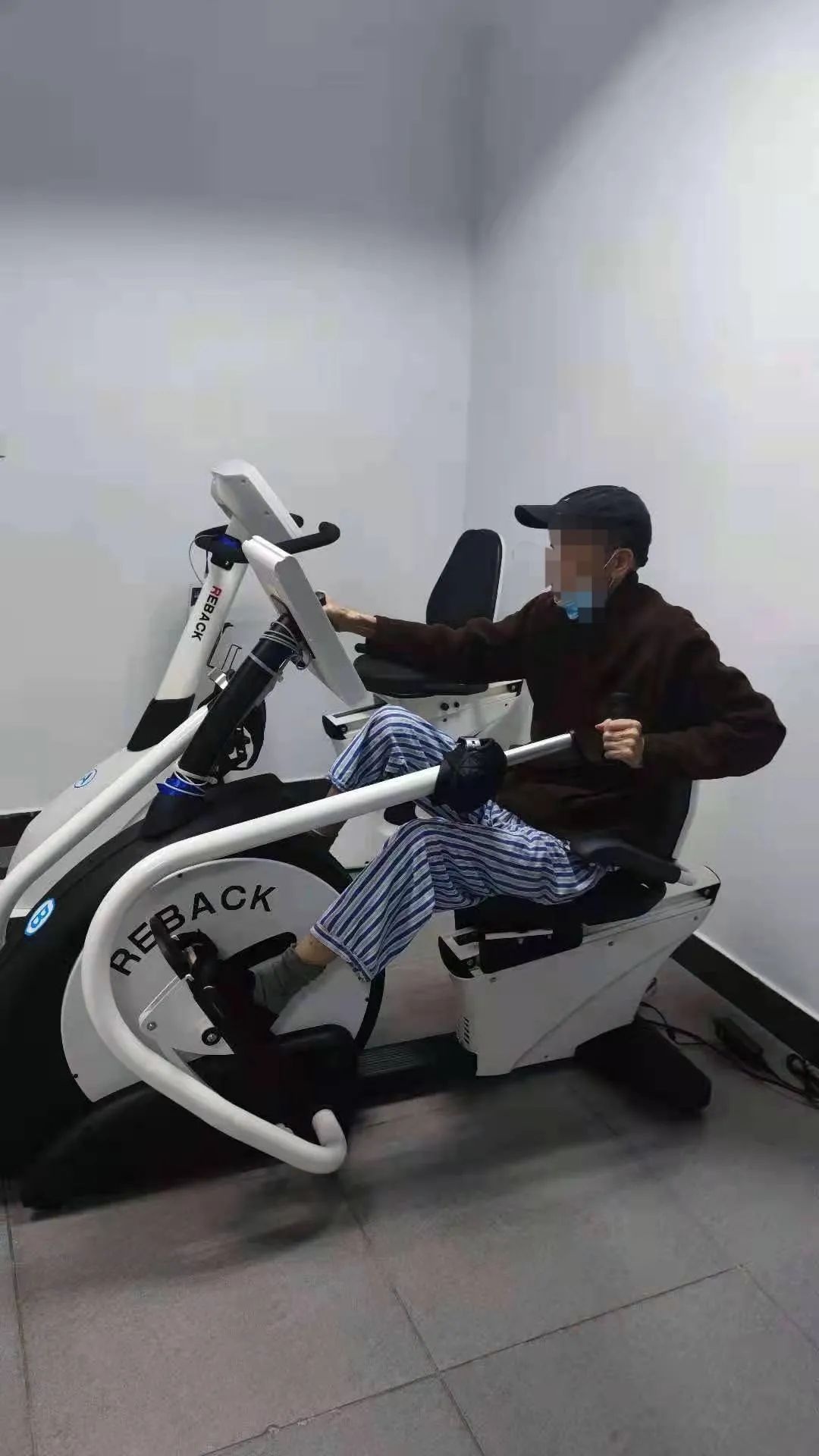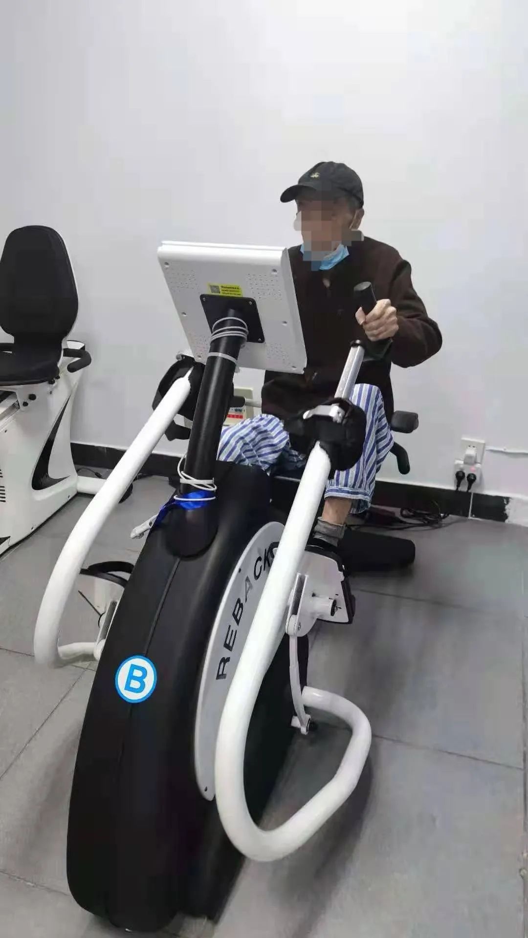 康复中心运动仪器有上下肢联动、踏车、哑铃、弹力带等,其中体外反博治疗深受患者欢迎,每天不少病患排队治疗。