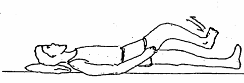 膝关节尽量伸直,大腿前方的股四头肌收缩, 踝关节尽量背伸, 缓慢抬起整个下肢大约15CM, 保持5秒钟,再保持同样姿势,缓慢直腿放下。