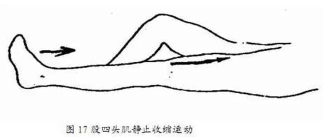(1)骨折早期,做下肢股四头肌静止收缩,踝关节伸屈活动。(见图17)