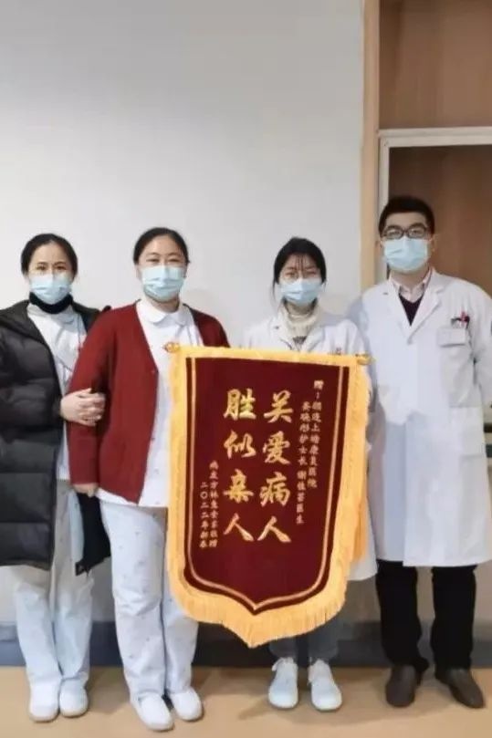 4月2日下午,一位家属匆匆赶来医院,手上还拿着定制的锦旗,特意找到医务科刘科长,对管床医生罗伟薇认真负责的工作态度致以由衷感谢。