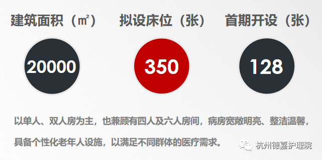 医院建筑面积20000平方米,拟设床位350张,首期开设128张床位,以单人、双人房为主,也兼顾有四人及六人房间,病房宽敞明亮、整洁温馨,具备个性化老年人设施,以满足不同群体的医疗需求。