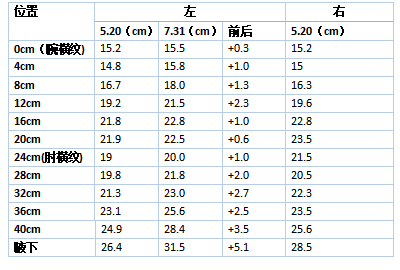 ④ 上肢围度