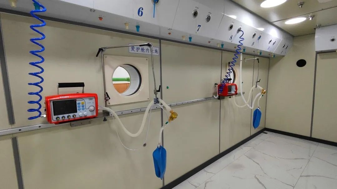 我院高压氧舱内配置专业医护人员,同时配备各类监护抢救支持等设备,便于在舱内进行抢救、监护、输液等操作,随时保障重症患者的安全。