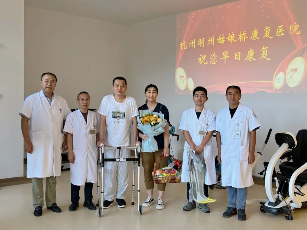 这位工人名叫刁怀涛,为了康复,患者刁怀涛先生转至杭州明州姑娘桥康复医院。经过3个月的治疗,刁怀涛先生从“躺着进来”到“走着出去”,取得了良好的康复效果。