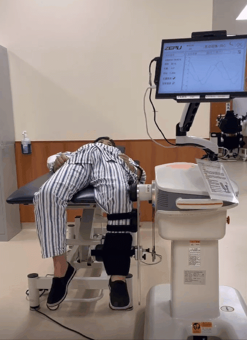 浙江省人民医院康复医学科主任叶祥明教授联合综合康复病区周亮主任对江女士进行评估和诊断,并制定了个性化的循序渐进的治疗方案,包括早期肌肉力量较差时的被动运动到中后期肌肉力量逐渐增加后的助力运动及抗阻运动,等速训练等。