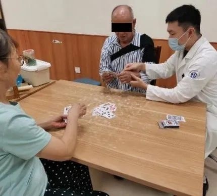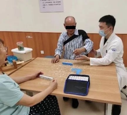 经过系统的评估,作业治疗师为老王调整了治疗方案,通过文娱治疗—— “棋牌训练”,进一步强化手上肢功能,改善负面情绪,提高自我效能。