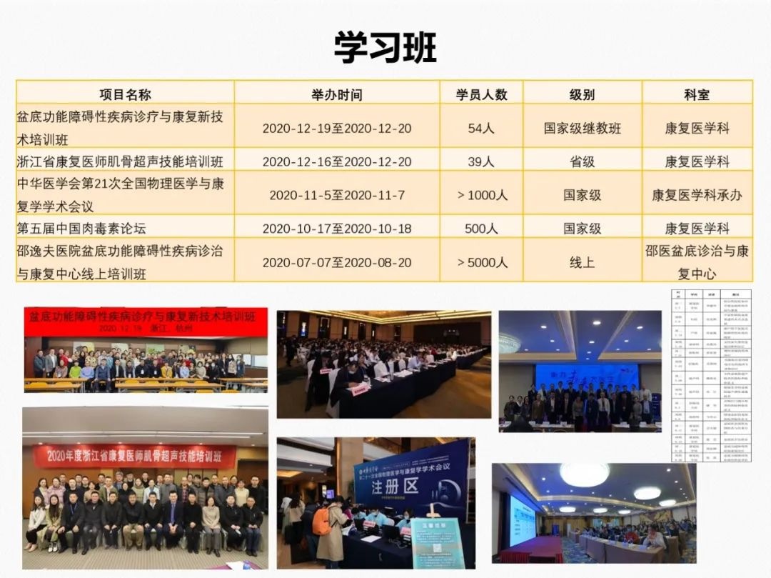 盆底功能障碍性疾病包括一组盆腔支持结构缺陷或退化、损伤及功能障碍造成的疾病,在综合性医院内涉及多个临床学科。邵逸夫医院将妇产科、肛肠科、泌尿科、康复科、消化科、放射科、超声科和精神卫生科等学科进行联合,成立了国内综合性医院首个多学科合作的“盆底功能障碍性疾病诊断与康复中心”,在非手术治疗领域,康复医学科已经走在了全国的前列,是国内康复医学界公认的盆底康复领军科室,每年吸引来自全国各地的盆底康复进修生100余人,科室先后牵头组织撰写了系列盆底康复丛书和牵头编写了中华医学会物理医学与康复学分会组织的盆底康复专家共识。