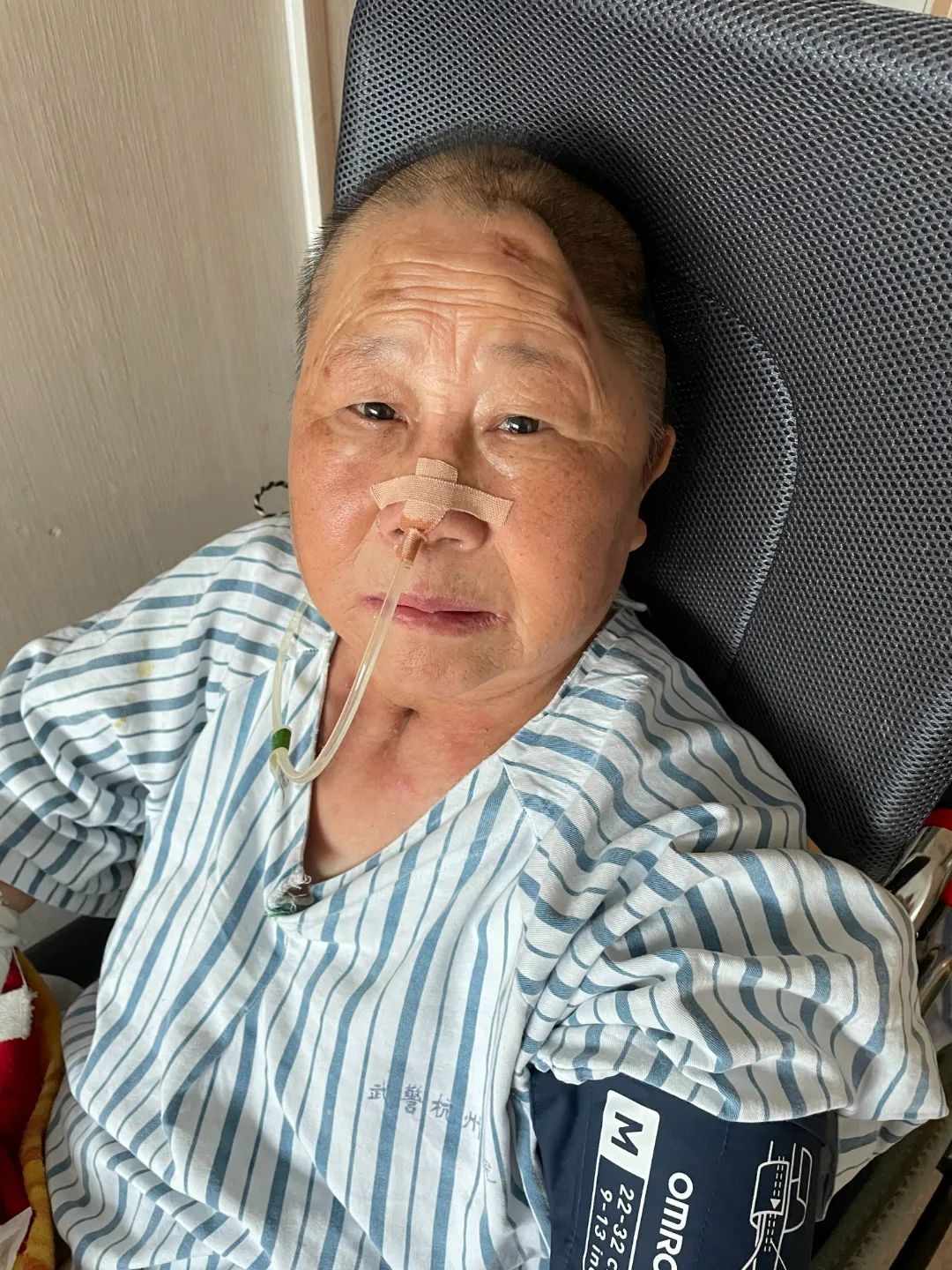 经过家属的多方打听,得知武警浙江总队医院康复科有着强大的医疗团队及脑外伤治疗方面有诸多的成功案例,经验丰富,专业性强。7月29日转来武警浙江总队医院。刚入院时:黄奶奶意识不清,气管切开,留置胃管、导尿管,四肢有自主活动。