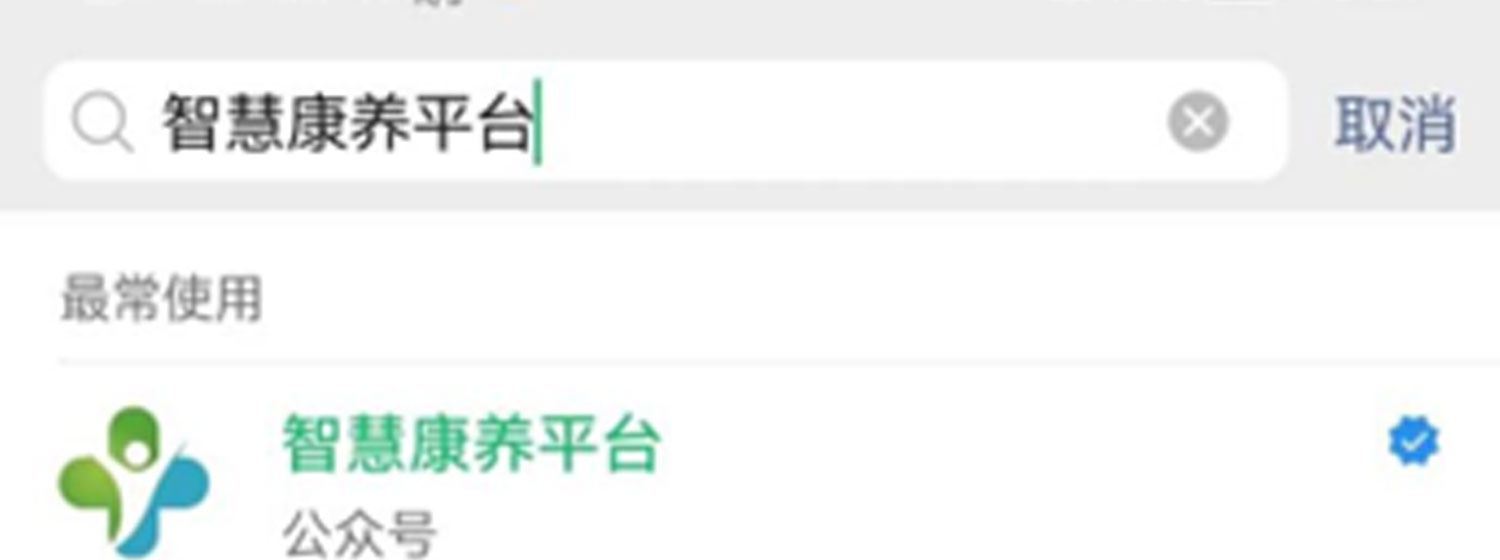 打开微信搜索,搜素“智慧康养平台”,点击并关注“智慧康养平台”……