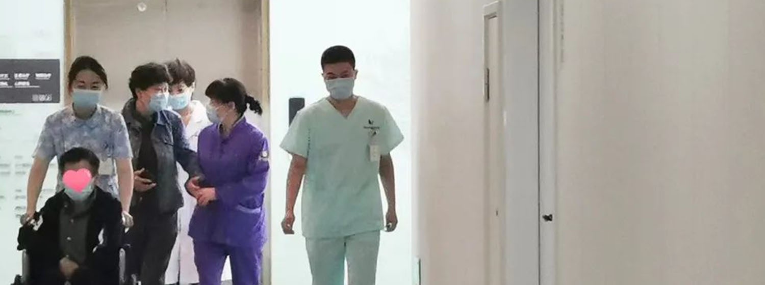 这是一位69岁的多发骨折病人,外院已行钢板内固定术,坐着轮椅……