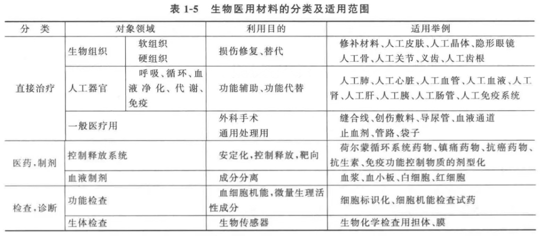 表 1 生物医用材料的分类及适用范围《生物医用高分子材料》