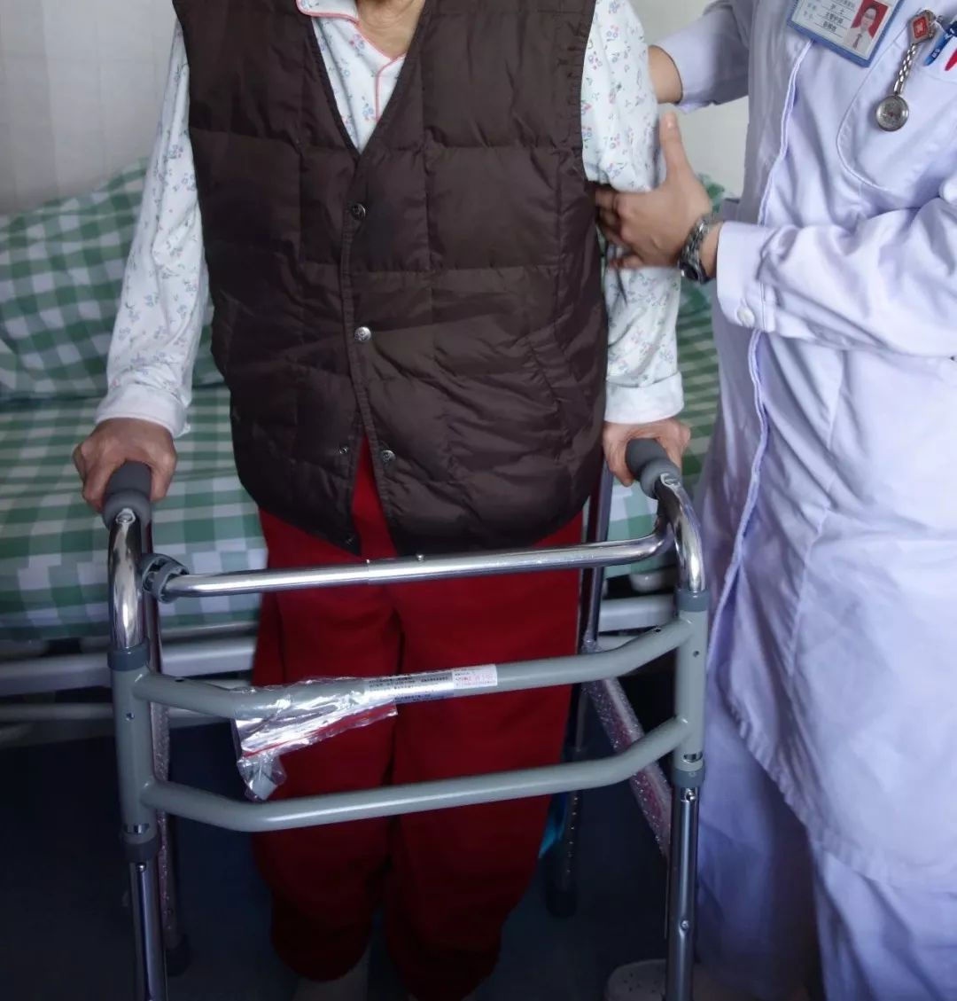 患者住院三周,已经可以在助行架的辅助下进行短距离步行,在出院后继续进行康复训练,在两到三个月内逐渐过渡到双腋拐辅助步行→单手杖辅助步行步行→独立步行,完全可以应付在家庭内的自我护理。