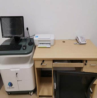 康复大厅康复师工作台面干净整洁,康复设备摆放整齐,地面干净无杂物