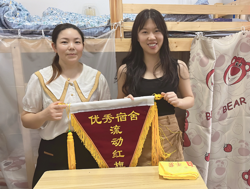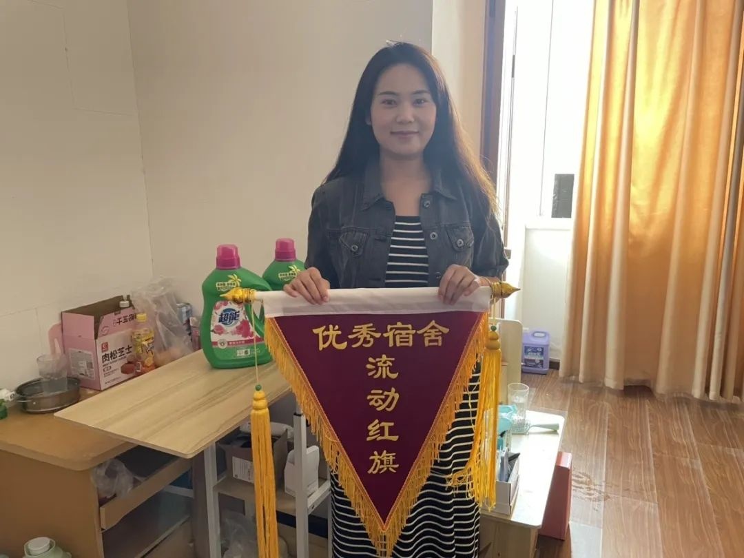 医院总务部给评优宿舍员工送上流动红旗、桌子、洗衣液等,让住宿员工都有归属感