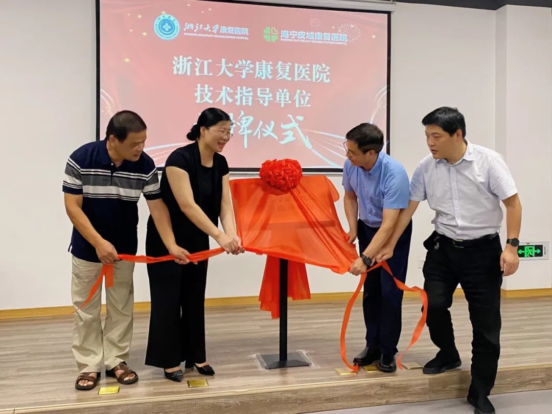 授牌仪式由海宁皮城康复医院行政院长许萍主持,浙江大学康复医院院长林建强,副院长张庚,办公室主任徐宁,海宁市卫健局副局长吴轶思,海宁市残联二级调研员、原副理事长陈洪兴,海宁中国皮革城股份有限公司党委副书记、董事长、总经理林晓琴,党委委员、副总经理张国兴,健康事业部总经理黄咏群,海宁皮城康复医院院长王龙等多位领导与专家出席授牌仪式,共同见证这个重要时刻。