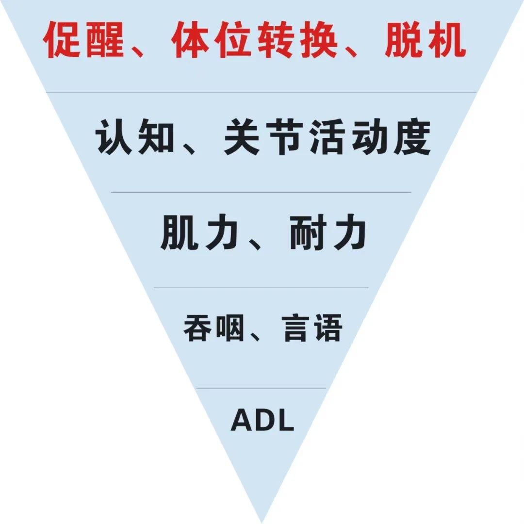 呼吸训练,肌肉功能训练,关节活动度训练,认知训练,全身耐力训练,转移训练,步行训练,吞咽言语训练及作业治疗等。
