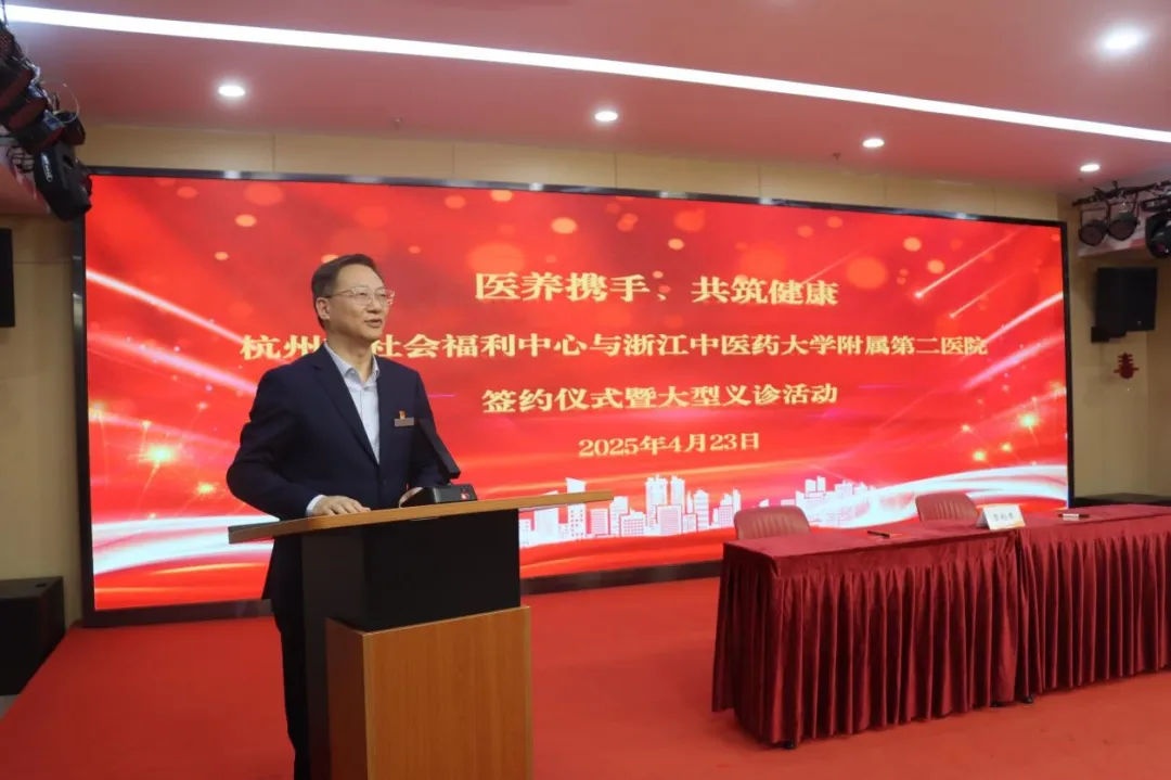 张威院长在讲话中强调,深化医疗卫生机构与社会福利机构合作,是国家促进医养结合服务高质量发展指导意见的具体要求。医院与杭州市社会福利中心自去年签署框架协议以来,已逐步建立密切的互访交流和顺畅的服务联动。此次深化合作,医院服务专科及专家团队将进一步提质扩面,并派驻专业管理人员,致力于让中心服务人群享受到更专业、便捷、优质的健康照护。