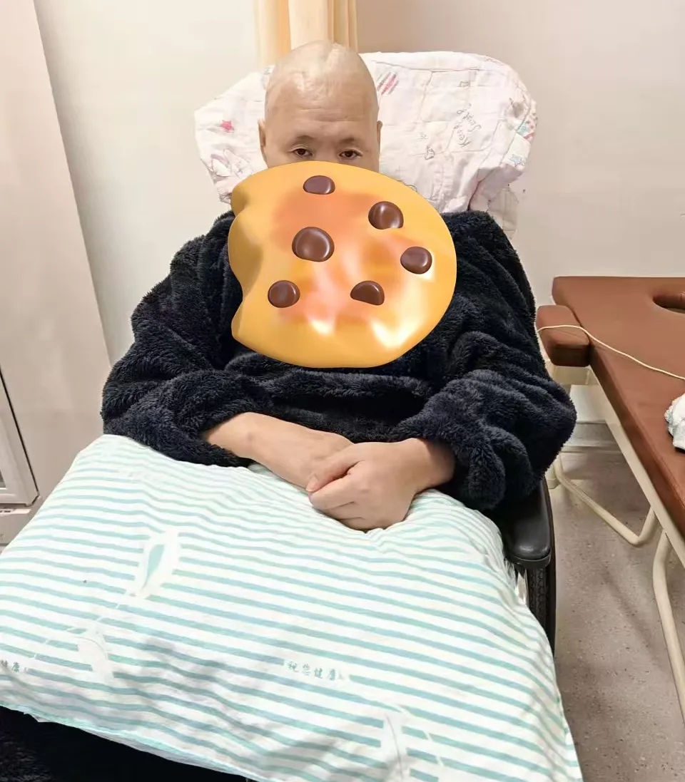 患者万先生,10月前无明显诱因出现意识不清,由120送入当地医院,后转入省内三甲进行治疗,诊断为脑出血,重症肺炎,脑积水,后经病友家属介绍来到我们医院,入院时神志不清(MSC-),无发声,查体不配合,气管套管拔出状态,经中医科刘主任扎针治疗一周左右患者意识逐渐恢复清醒,九天左右肢体可轻微移动,现可自己看手机与家人有一些简单沟通。以下左图为入院之前状况,右图为现今恢复意识状况。