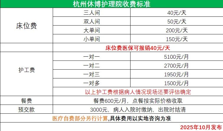 杭州休博护理院收费标准: